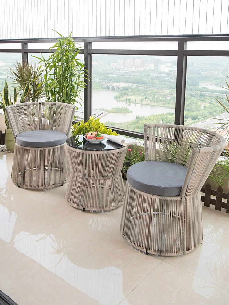 子力アウトドアラタンチェア3点セット - バルコニーにぴったりなリラックスチェアとテーブル!クリエイティブなラタン編みで、カフェのような雰囲気を演出。おしゃれで快適なひとときをお楽しみください!