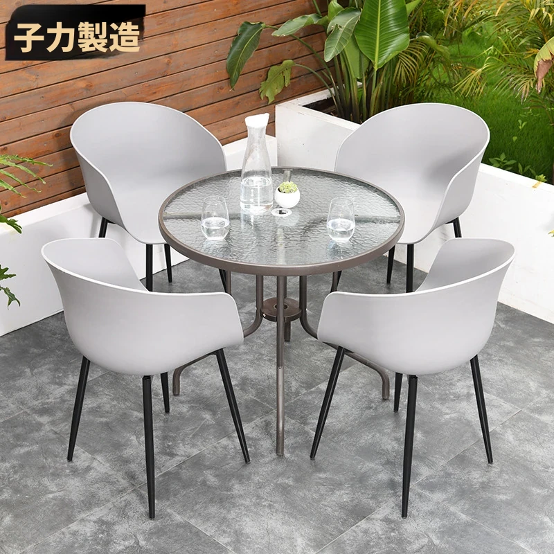 子力アウトドアテーブルセット - モダンでシンプルなデザイン、別荘や庭に最適!プラスチック製で耐久性抜群、屋外パティオやバルコニーにぴったりのリラックス空間を演出します。